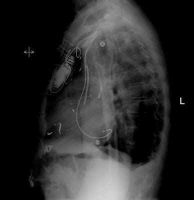 7. Ignore the mediport and EKG leads - What is wrong? What complication is present?